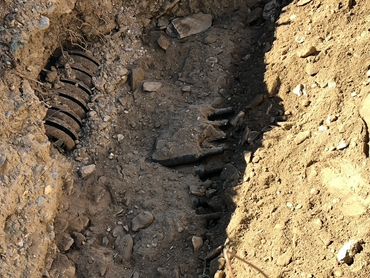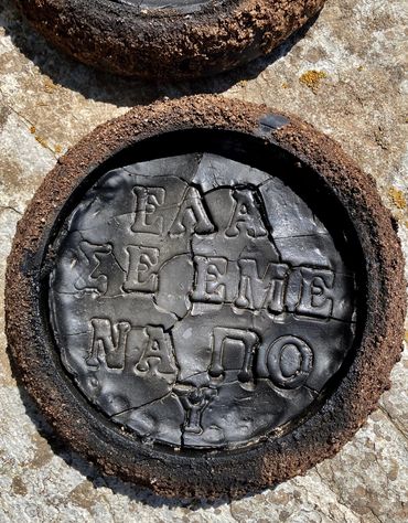 The fragmented chthōn (earth) that enwraps the object of the Concealment – sacrifice – becomes the signifier of the generative and destructive powers that govern art and life. As the installation sinks into the ground, it transcends the decay and mortality and enters an inaccessible extra-sensory sphere. Thus, it breaches the boundaries between the visible the invisible, sharpening the ceremonial dimensions of the Concealment as a ritual of mediation between the secular and the transcendental. The selected location, opposite to the sacred island of Apollo, the god of light, intensifies these ritual elements. From the immaterial light to the stygian darkness, the Concealment exemplifies the primaeval procession from the Sun – Father – Phallus to the Earth – Mother – Womb. Concurrently, the immersion of the work into the earth signals its distancing from the physical world, its sacrifice.